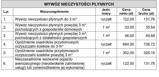 Nasi Klienci płacą tylko za ilość faktycznie pobranych ścieków. Koszt wykonania usługi to 35,64 zł za m ³ nieczystości. Podana cena dotyczy jedynie ścieków z gospodarstw domowych