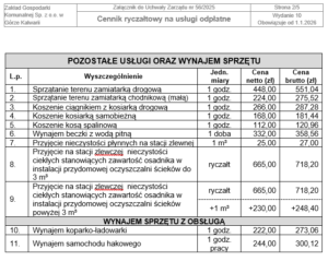 Ceny usług są uzależnione od ilości i rodzaju nieczystości ciekłych. Szczegółowy cennik poniżej